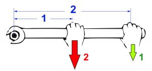 شکل 2 -نیاز به نیروی کمتر، به کمک فاصله بیشتر از مرکز گشتاور
