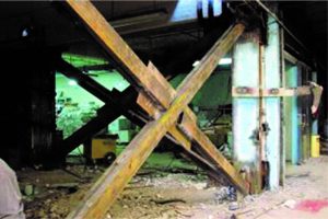 اما در حین اجرای این تصمیم در تخریب یکی از این دیوارها، با یک موضوع پیشبینینشده روبرو میشوند و متوجه میشوند که این دیوار، دارای یک بادبند همگرا بودهاست که به هر دلیلی، پیش از تخریب از آن بیخبر بودهاند.