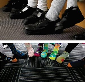 اما وضعیت پوشیدن یا نپوشیدن کفش در مدارس سایر نقاط جهان هم جالب توجه است. در حالی که در بعضی از نقاط جهان با سنتها و فرهنگ حاکم، سازگار است، در برخی دیگر از نقاط هم در تعارض و مغایر میباشد.